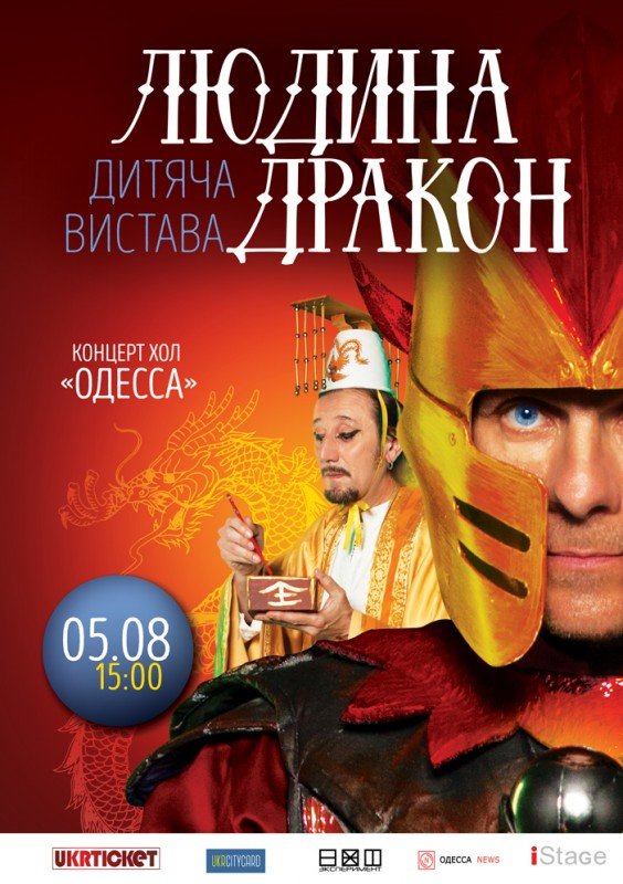 5 августа 2016 г. в Концерт-холле «Одесса» спектакль для всей семьи «Человек-дракон» (Аркадия, Гагаринское плато, 5). Начало в 15.00.