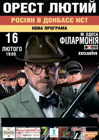 НАКОНЕЦ! Выдающийся украинский «певческий антрополог» Орест Лютый, что в 2012 году создал культовый проект «Кроткая и строгая украинизация», за который он был объявлен в розыск российским ФСБ, даст в Одессе Большой концерт с новой программой «Русских в Донбассе нет».