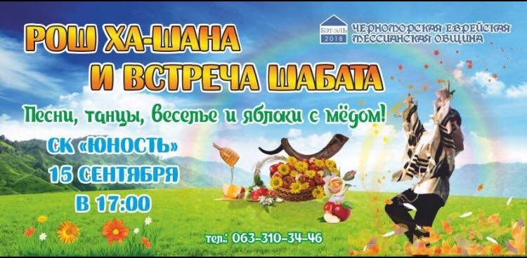 В Черноморске, 15 сентября, во Дворце спорта "Юность" состоится еврейский Новый год Рош ха-Шана и праздник Шабата. Начало в 17:00.