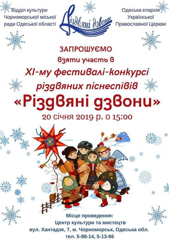 В Черноморске, 20 января, состоится XI фестиваль-конкурс рождественских песен «Рождественские колокола».