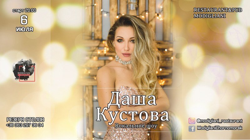 Restaurant & Pub “MODIGLIANI” приглашает вас на тёплый вечер в компании шикарной вокалистки Даши Кустовой!