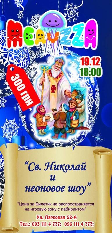 В Черноморске пройдёт яркое неоновое шоу и встреча со Святым Николаем. 19 декабря в 18:00 детский развлекательный клуб Медуzza ждёт всех деток праздновать День Святого Николая.